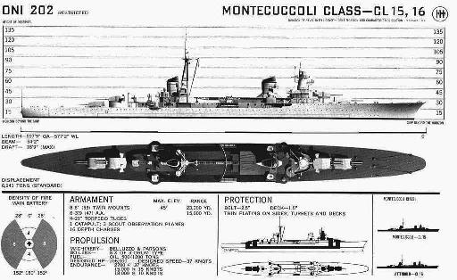 Gli incrociatori classe Montecuccoli si possono considerare i primi incrociatori leggeri costruiti dopo la I^ G.M. da parte della Regia Marina, infatti i precedenti 5000 T erano in sostanza dei grossi esploratori. Furono progettati nel 1931 e presentavano una buona protezione, grazie alle forme affinatissime dello scafo avevano una altissima velocità. La protezione era affidata a due paratie di acciaio al nichelcromo: una est